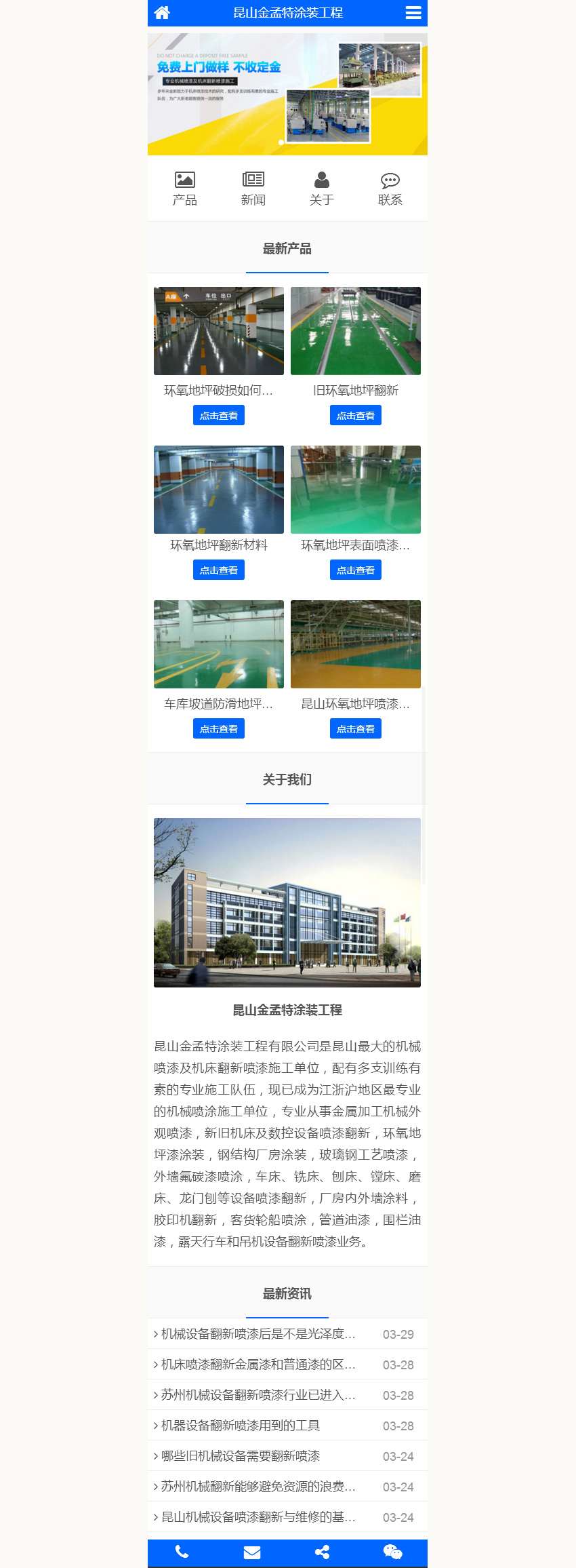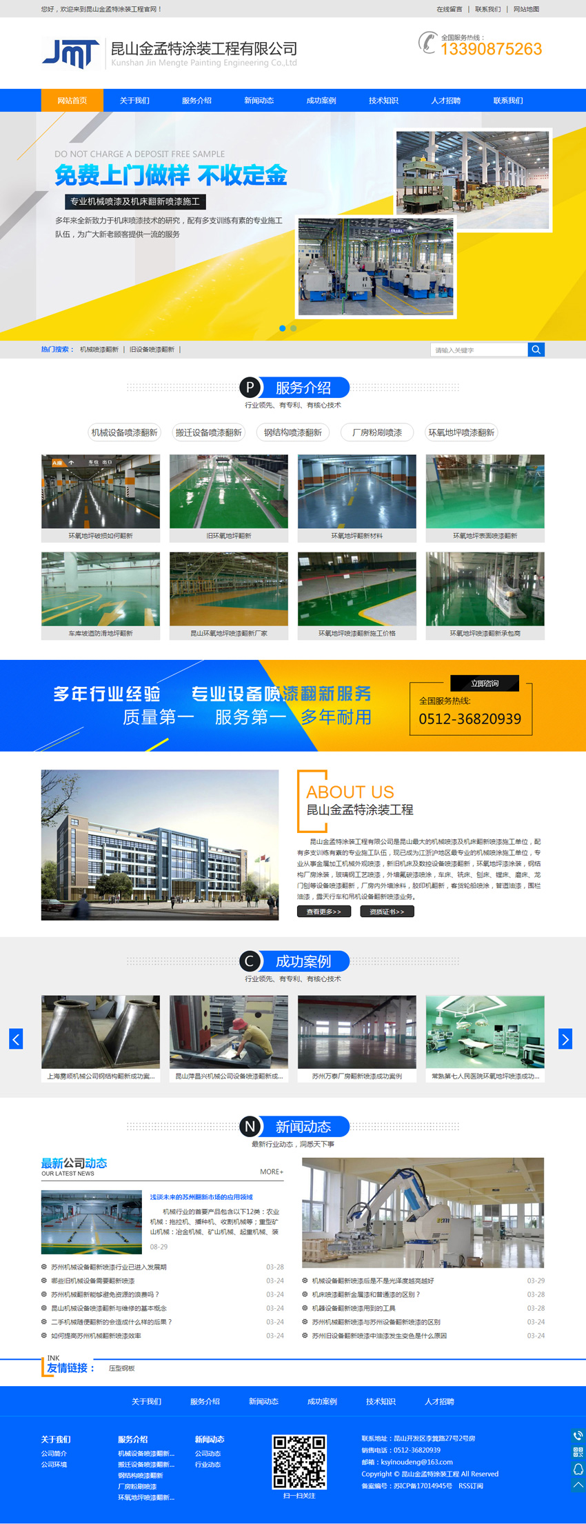 昆山金孟特涂装工程有限公司 ——是昆山最大的机械喷漆及机床翻新喷漆施工单位(昆山金孟成立于2005年经过多年的发展壮大,配有多支训练有素的专业施工队伍,现已成为江浙沪地区最专业的机械喷涂施工单位,多年来全新致力于机床喷漆技术的研究,为广大新老顾客提供一流的服务,我们是一家专业从事金属加工机械外观喷漆,新旧机床及数控设备喷漆翻新,环氧地坪漆涂装,钢结构厂房涂装,玻璃钢工艺喷漆,外墙氟碳漆喷涂,车床、铣床、刨床、镗床、磨床、龙门刨等设备喷漆翻新,厂房内外墙涂料,胶印机翻新,客货轮船喷涂,管道油漆,围栏油漆,露天行车和吊机设备翻新喷漆业务。
