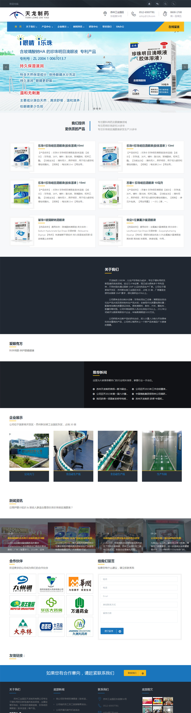 苏州工业园区天龙制药有限公司拥有全自动制水设备;珍珠粉深加工设备;滴眼液全自动化生产流水线及固体制剂生产流水线;全套现代化质量检测仪器;配备有完善的质量保证体系。拥有滴眼剂,散剂,片剂,颗粒剂,胶囊剂等剂型。公司中高级职称人员占比例在45%以上。2012年公司被评为国家高新技术企业,年销售滴眼液5000万支。