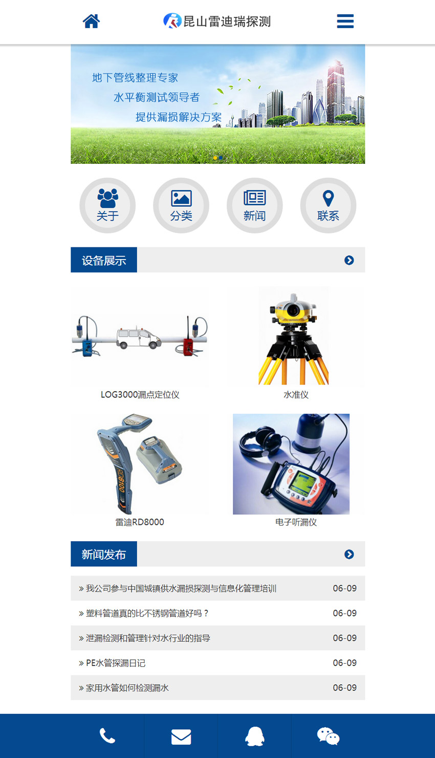 - 昆山雷迪瑞管道探测有限公司是国内最早从事地下管线探测的单位之一,坐落于中国经济最活跃的长江三角洲核心部位江苏省苏州昆山市。公司始终坚持以“科技探漏,服务大众,技术一流”为服务理念,以高新技术与品牌打造企业。我们有专业的团队和成熟的技术,立志成为长三角乃至华东地区首屈一指的专业化的管线探测绘图、漏水检测,漏水评估,开挖维修一站式探测公司。