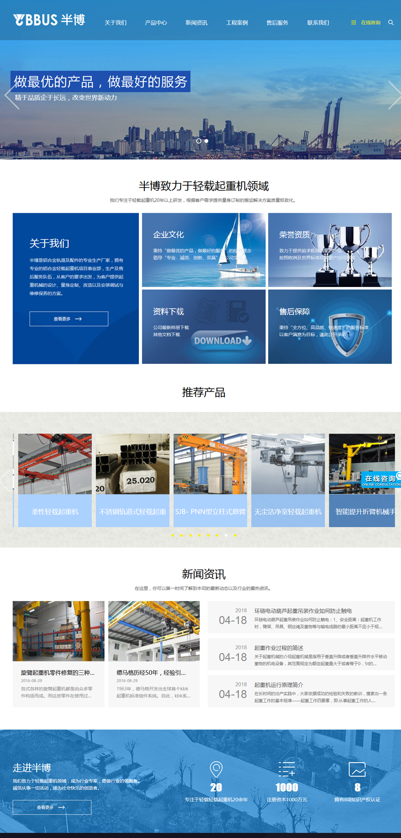 - 半博机械工程(上海)有限公司专注于轻载轻载起重机20年以上研发,根据客户需求提供量身订制的搬运解决方案质量极致化:我们致力于提供追求极致质量的产品,按照欧洲及世界标准高质量产出可靠性:我们精益求精的安全设计理念保障产品使用的可靠性和安全性耐用性:对于细节的精确把握使我们的产品经久耐用。