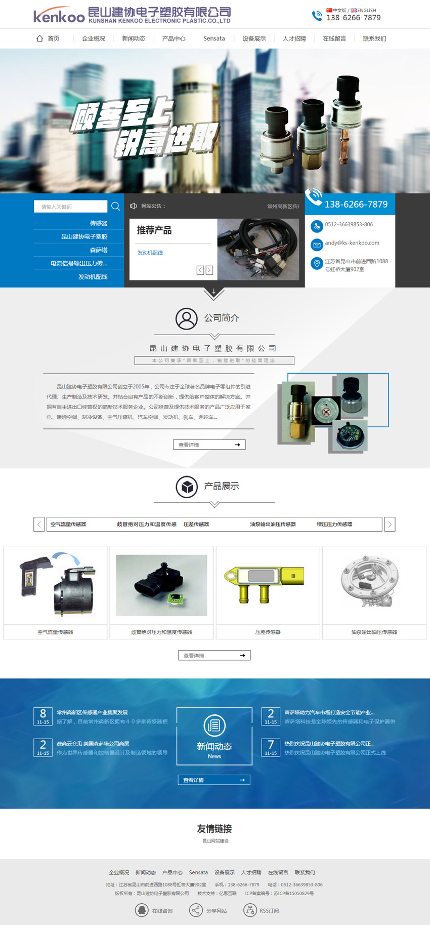 - 昆山建协电子塑胶有限公司创立于2005年,公司专注于全球著名品牌电子零组件的引进代理、 生产制造及技术研发。并结合自有产品的不断创新,提供给客户整体的解决方案。并拥有自主进出 口经营权的高新技术服务企业。 公司经营及提供技术服务的产品广泛应用于家电、暖通空调、制冷设备、空气压缩机、汽车空 调、发动机、刹车、两轮车、铁路运输、医疗、军工、通信、矿业、半导体、冶金、石化、天燃气 等领域。