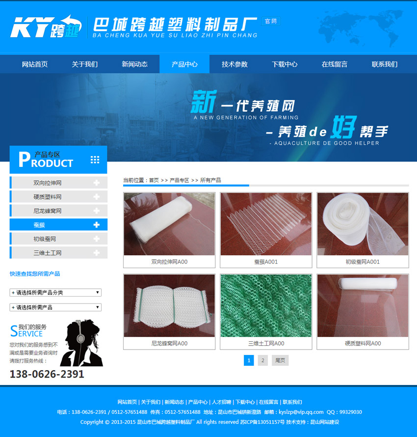 产品广泛用于农业种植、养殖与防护,如种植上的植物支架网、大棚薄膜保护网、植物攀爬网、养殖上的养蛇网、养鸡网、青蛙养殖网、养蚕除沙网、初级蚕网、尼龙小蚕网、尼龙复蔟网、硬质塑料蚕蔟、无结网、三维土工网、三维植草网、大闸蟹围网多功能的木耳晾晒网、果园防护网等。