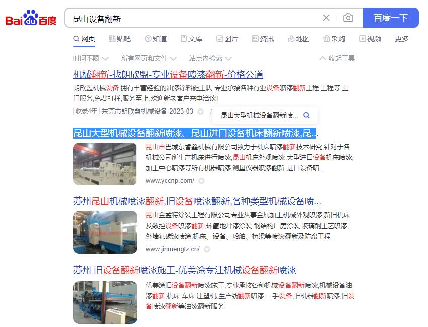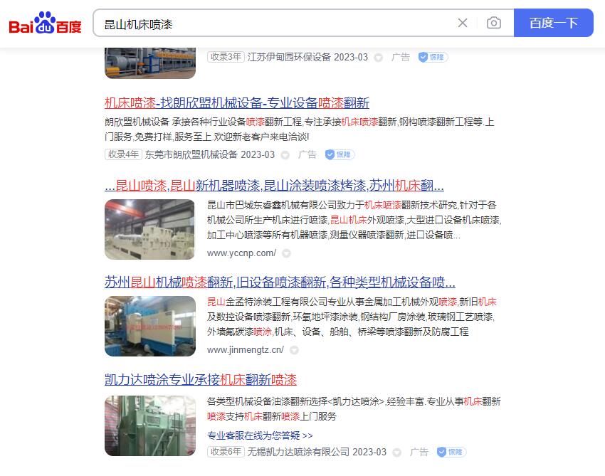 - 昆山市巴城镇东睿鑫机械贸易商行主要从事机床设备喷漆、工厂旧设备翻新喷漆、清洗、补漆,进口高端设备翻新喷漆,精密仪器喷漆,钢结构设备喷涂、设备防锈处理、苏州设备油漆、工程油漆涂装、机械翻新喷漆、喷漆代加工,翻新喷漆、机器设备喷砂、大型零部件喷砂、烤漆、汽车模具夹具喷漆、等业务。对机械单位所生产的机械设备进行喷漆,原有的设备油漆表面喷漆翻新,搬迁新厂设备整体统一颜色喷漆,独立烤漆房,可承接工厂大批喷漆、防锈处理等业务,可提供上门服务,为您的机械设备增添完美色彩。